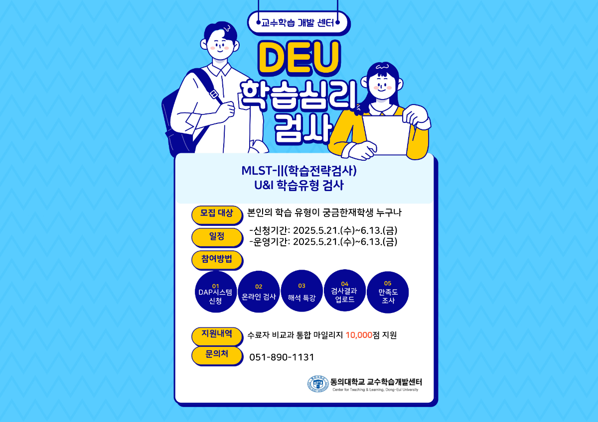 [대학혁신사업] 2025-1학기 DEU 학습심리검사 신청 안내(~25. 6.13.(금))